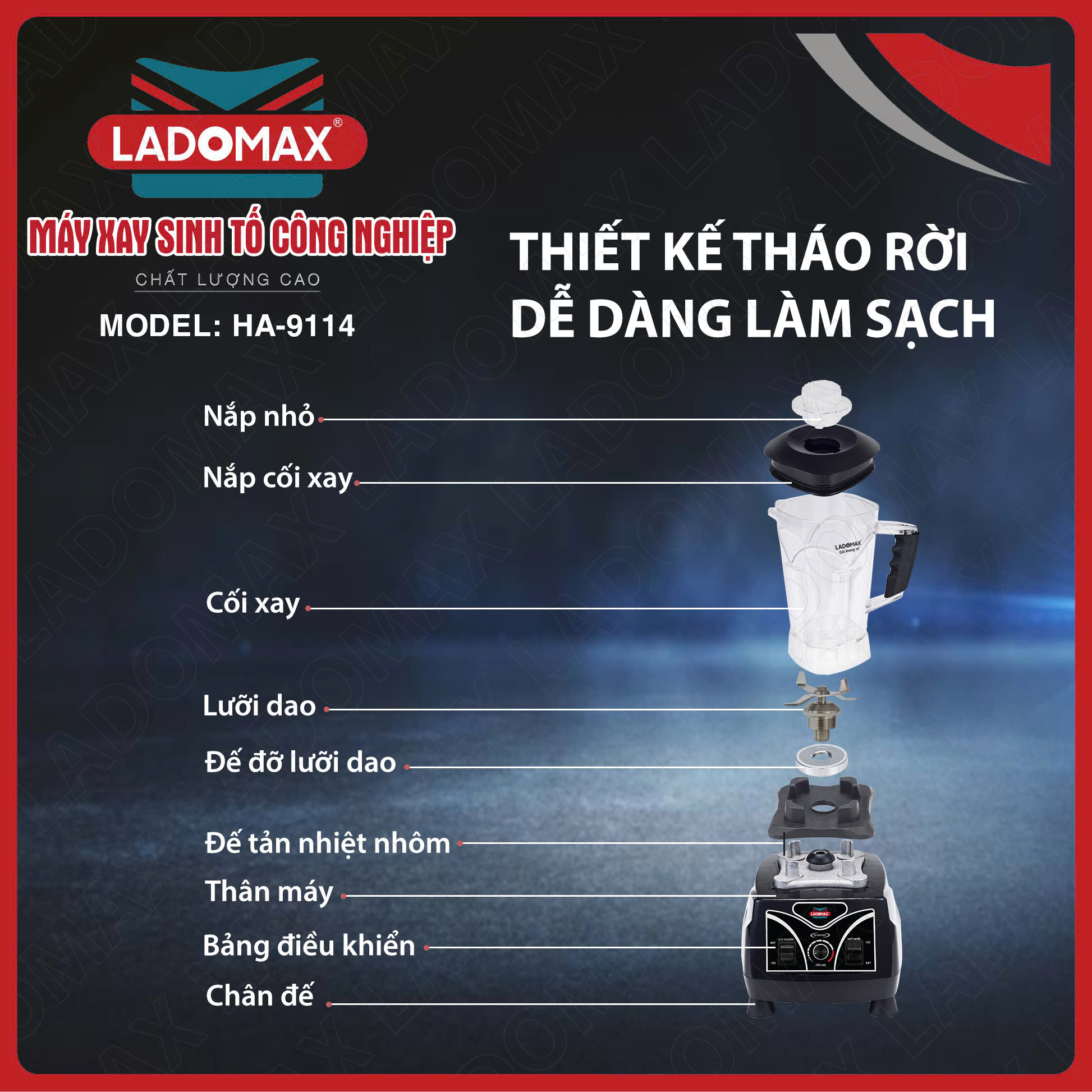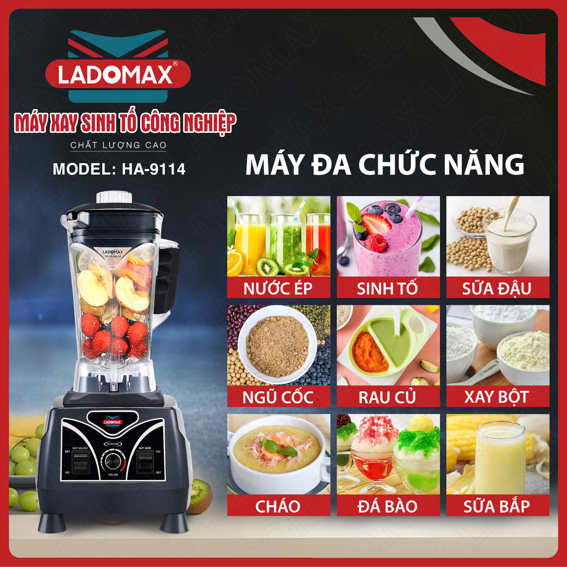 Máy xay sinh tố công nghiệp Ladomax HA‑9114 – Công suất lớn, bền bỉ, đa năng